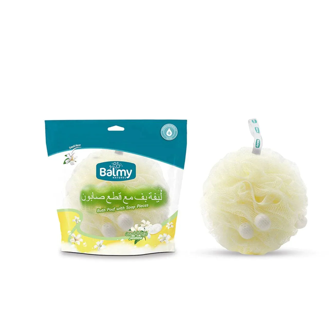 With the soap pieces in it, this bath pouf with soap pieces creates a rich layer of foam, cleans and softens your skin without use of any other soap or shower gel The scented soaps in it offer a unique bath experience.