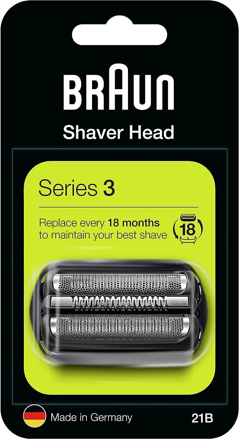 Details: Within 18 months, Braun shavers cut an average of 6,000,000 hairs. That comes with some gradual wear to the cutting parts, which can lead to a less comfortable shave. That's why Braun recommends changing your shaver's foil & cutter block every 18 months to get your shaver back to its best. Take care of your shaver, and it'll take care of you.