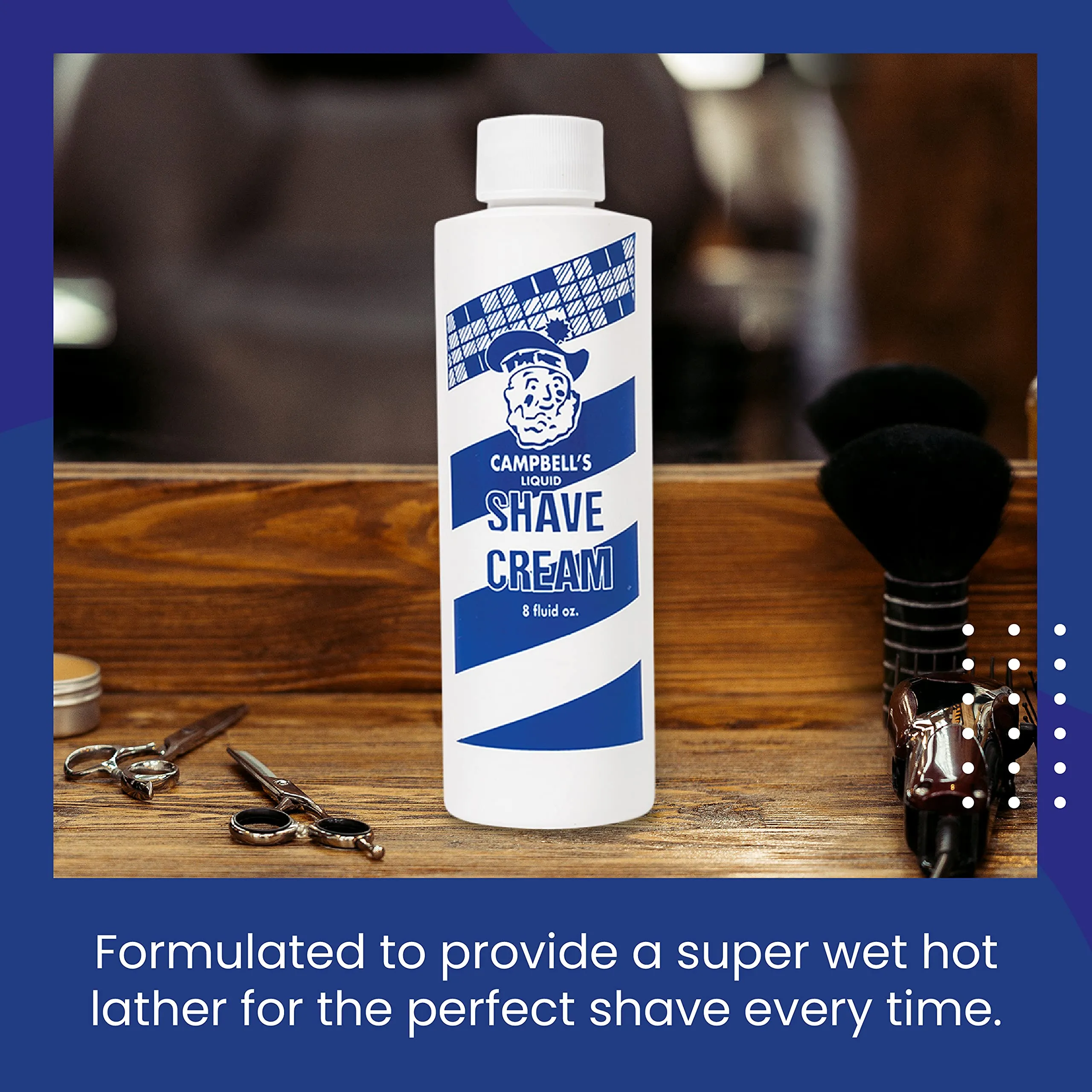 - BARBERSHOP-QUALITY SHAVING CREAM LATHER: Campbell’s Liquid Shave Cream is the original concentrate for the LatherKing hot lather machine. This liquid lather is ideal for barbers and professional shavers.