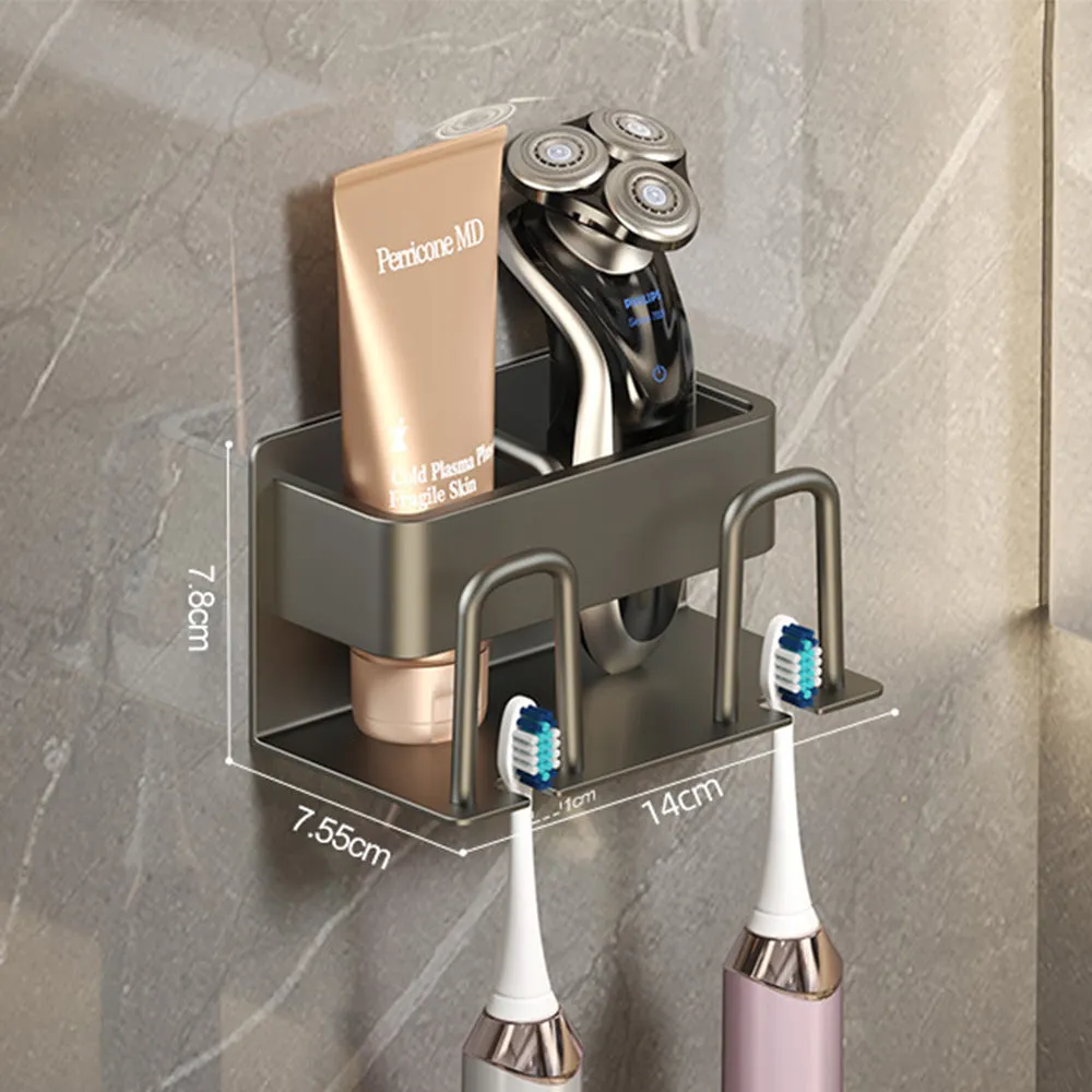 - Upgrade your bathroom organization with our Drill-Free Gunmetal Aluminum Toothbrush Holder Rack and enjoy a clean and tidy bathroom space.