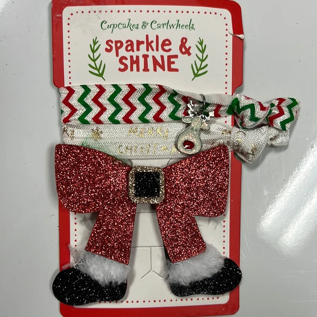 2 holiday Hair ties and one holiday glitter hair clip: Santa