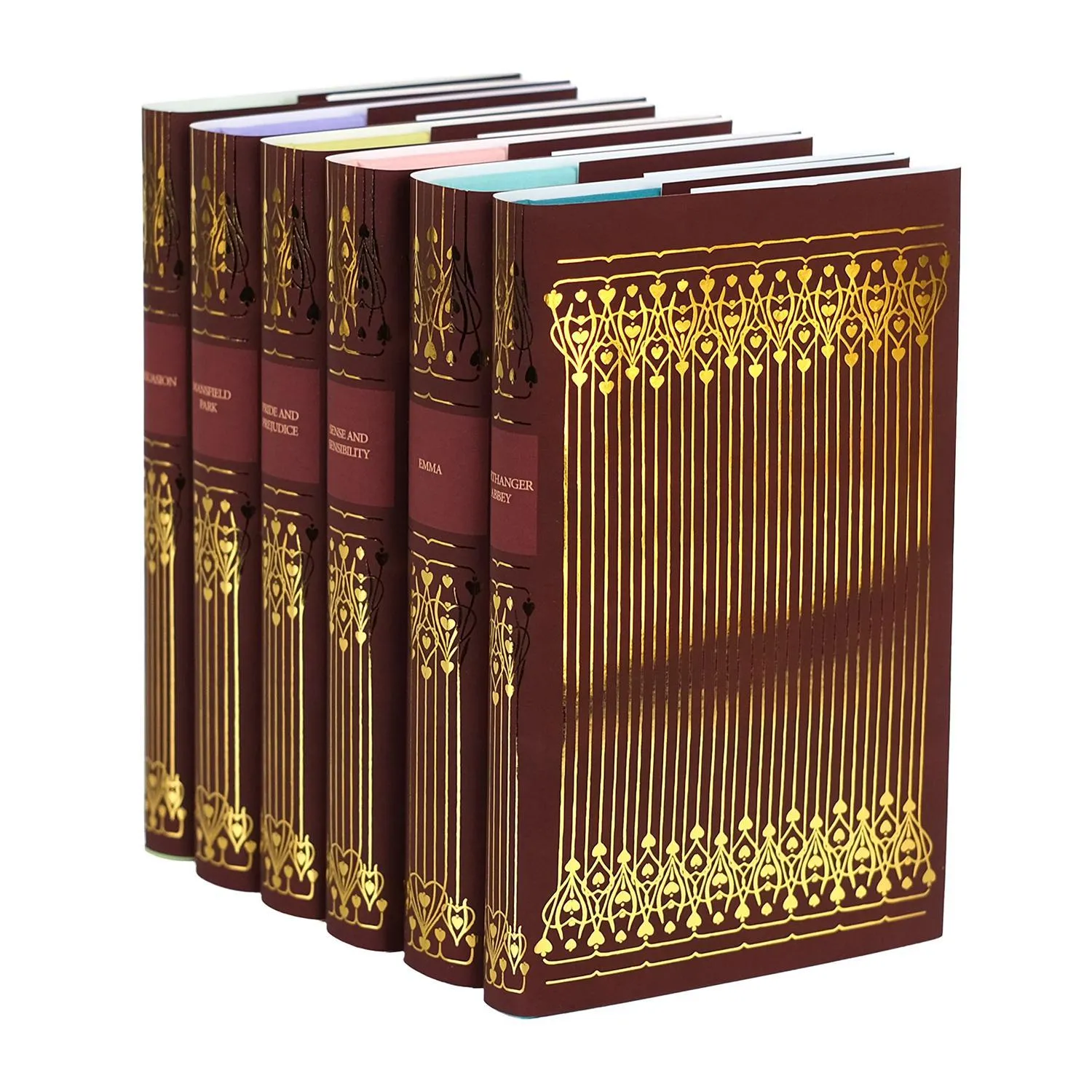 This exclusive set features our original Victorian-inspired Austen design reimagined in a deep, rich crimson, with exquisite gold foil details that shimmer like candlelight, wrapped onto the six Austen novels published by Arcturus in charming smaller size editions. A Limited Edition of just 100 hand-numbered sets of these jackets will be produced. Note that we are offering the jackets either as part of a book set, or as a Jackets Only offering, but no more than 100 total will be sold. This stunning design promises to be an elegant and heartfelt addition to any bookshelf, celebrating love in true Austen style. Discover favorite Austen quotes about love on each front inner cover flap, specially chosen for this set.