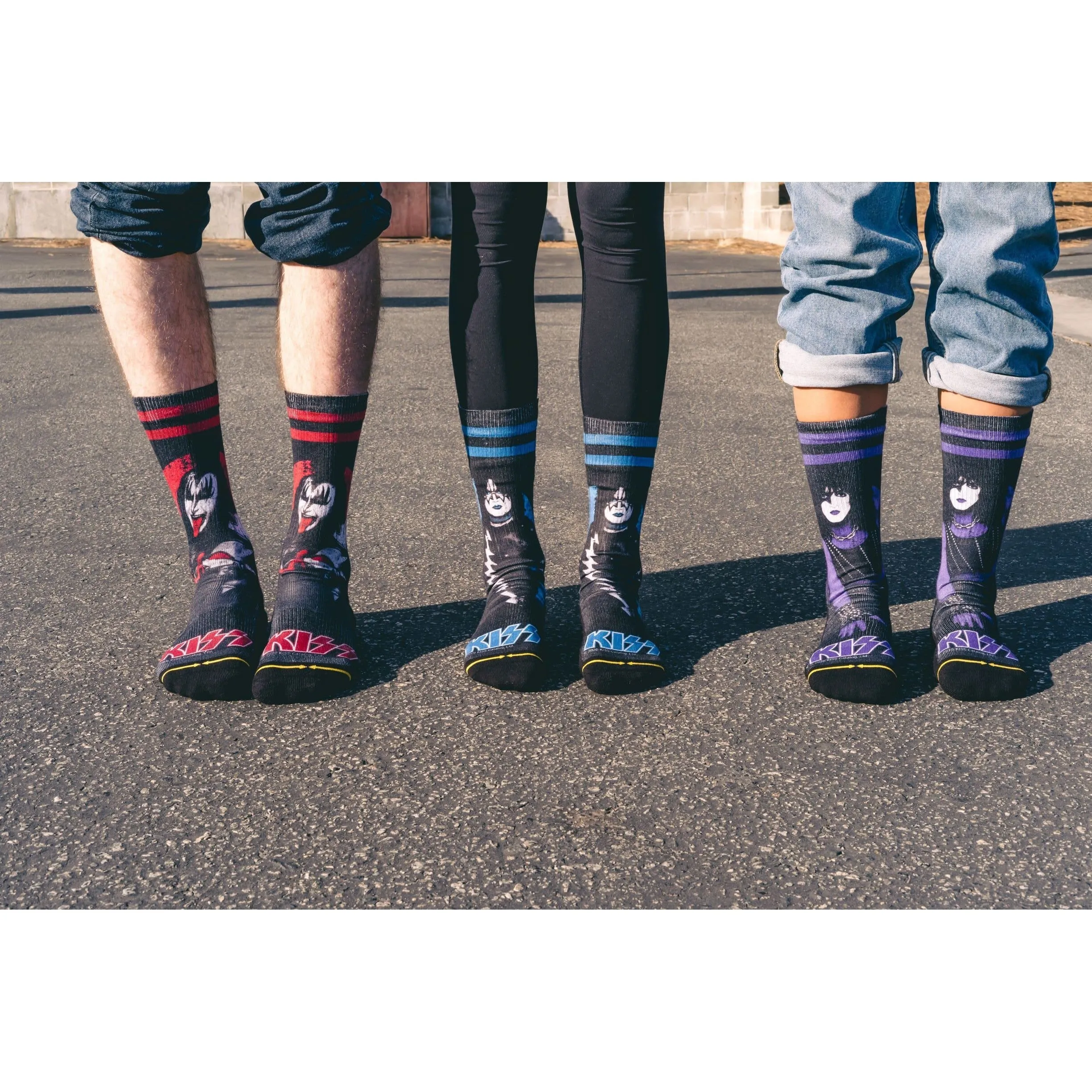 Introducing: The MERGE4 Kiss Collection Box Set. Four brand new KISS band socks all wrapped up in a limited edition box set. A must-have for every KISS fan, this KISS collectors' box includes four midweight crew socks featuring: The StarChild, The Demon, The Spaceman, and The Catman.