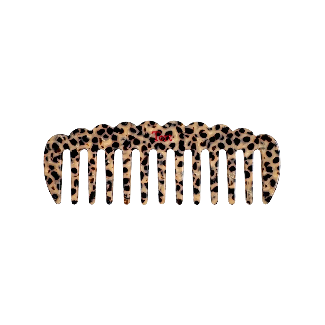 A sturdy scallop edged comb made from eco-resin. Designed with widely positioned rounded teeth so that hair retains texture and strength. Glides through wet or dry hair to gently untangle or tease after curling with tongs or straighteners, while preventing breakage, split ends and frizz. Great for curly hair.