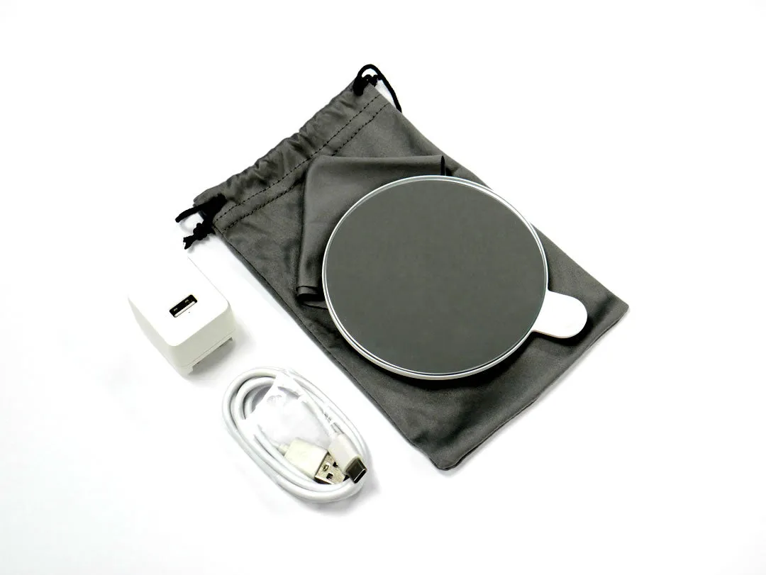 - The mirror is rechargeable via the USB cord and AC adapter, both included. A full charge will last up to 4 or 5 weeks. The 10x spot mirror can be used for travel in the included travel pouch.