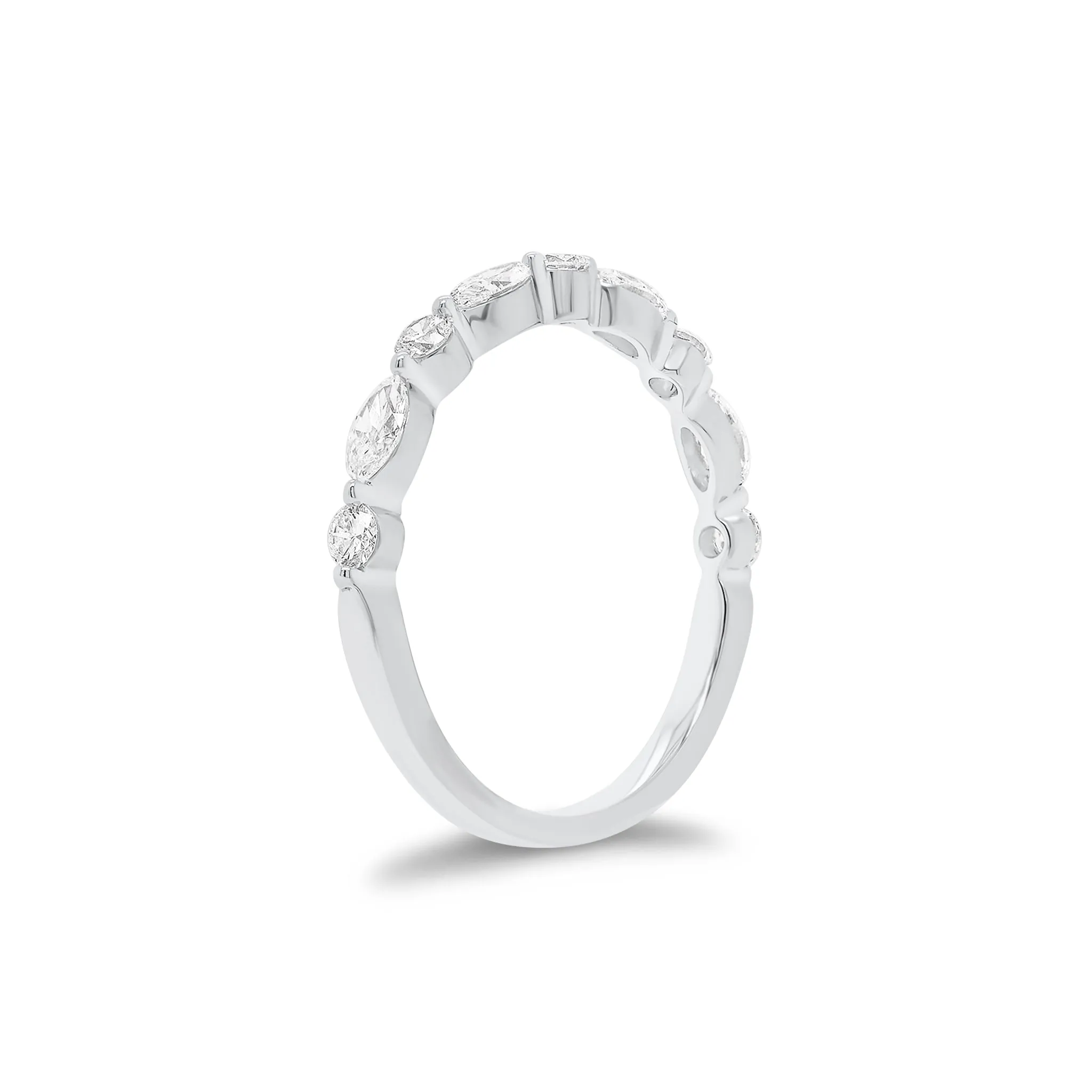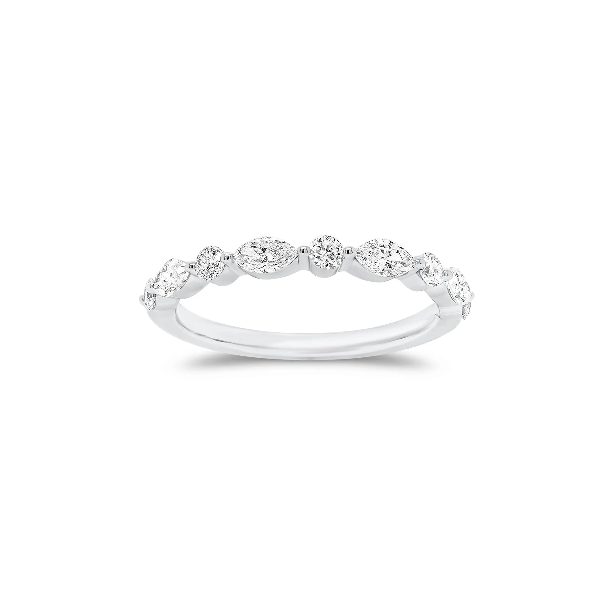 This beautiful and timeless wedding band offers a striking pattern of round and marquise-shaped diamonds. Crafted in 18K gold, it was designed to last a lifetime — just like your love.