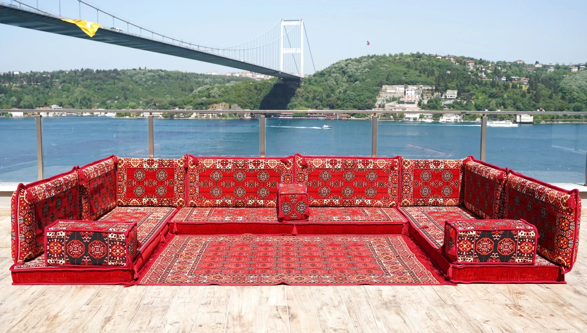 U Shaped Red Arabic Floor Sofa Set, Floor Cushions, Balcony Patio Sofas, Pallet Sofa, Ethnic Sofa, Moroccan Sofas