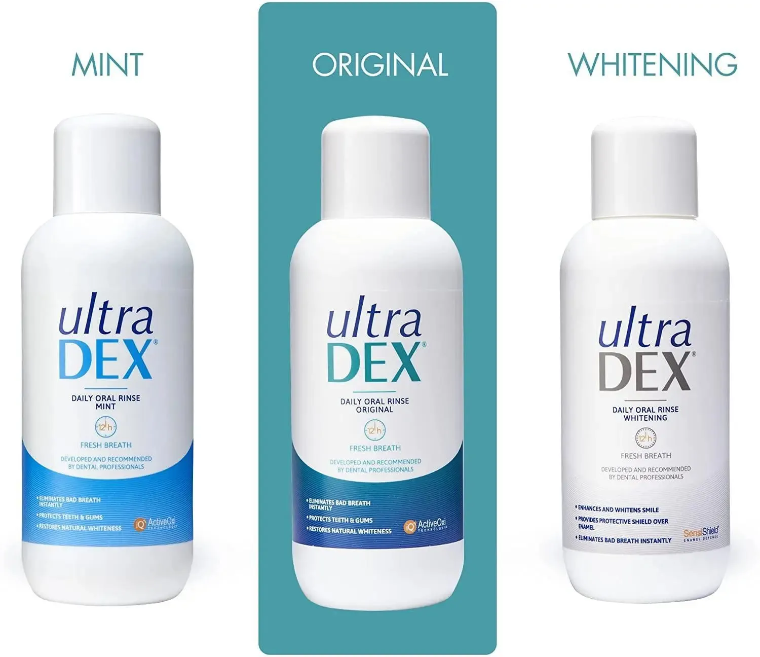 Ultradex Daily Oral Rinse the Advanced IQ ActiveOxi Technology within UltraDEX Daily oral Rinse is clinically proven to instantly eliminate bad breath compounds (Volatile Sulphur Compounds) for 12 hour fresh breath confidence.